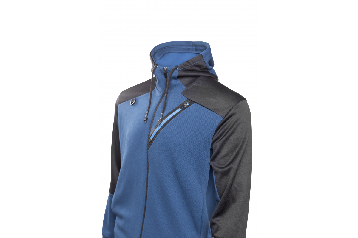 The ERIK sweatshirt is a comfortable and functional everyday garment designed for users working on the move or in a light industrial environment. The knitted fabric with added elastane provides flexibility and a snug fit, while the hood and kangaroo pocket add to the practicality of use. The modern colour combination of blue and black gives the sweatshirt a dynamic, sporty character, suitable for both work and everyday outdoor use.