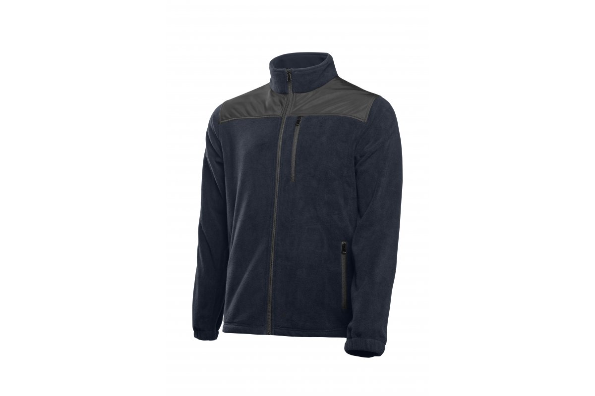 The EZRA fleece sweatshirt is a durable and functional garment for users working in conditions requiring good thermal insulation and increased wear resistance. High-weight fleece knit fabric protects against chilling, while OXFORD 300D fabric reinforcements on the shoulders protect areas particularly vulnerable to wear and tear. Classic black and practical pockets emphasise the utilitarian nature of the model, dedicated to drivers, technical and outdoor workers.